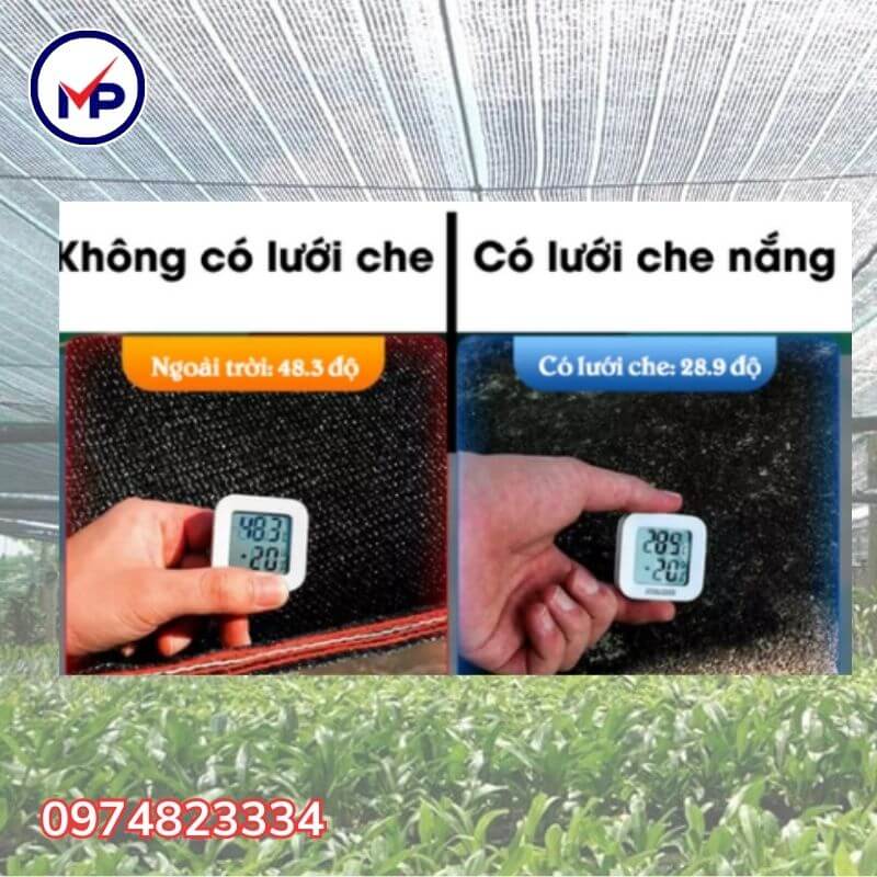 Che nắng hiệu quả: Giảm đến 90% ánh sáng mặt trời, bảo vệ cây trồng, vật nuôi, con người và vật dụng xung quanh.